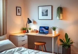 Создайте уютный мини-офис в домашней спальне с помощью нестандартных решений освещения и многофункциональной мебели