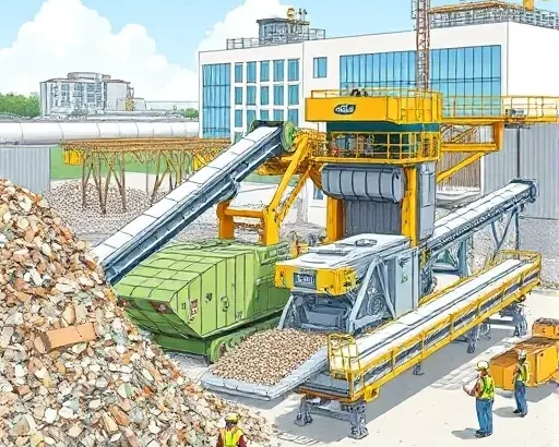 Какие технологические инновации используются на заводе для переработки строительных отходов?
